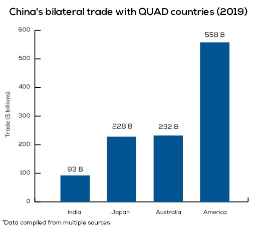 The U.S. is promoting the Quad (Australia, India, Japan and the US) as its Indo-Pacific alliance. It will seek to incorporate others – South Korea, Vietnam, Indonesia and the Philippines – into a ring of allies around China’s periphery. America’s NATO allies were pushed away by Trump but are now eager to align with the Biden Administration. France and the U.K. have initiated “freedom of navigation” operations in the South China Sea. The EU is in the vanguard of criticism of China’s alleged human rights violations in Xinjiang, Tibet and Hong Kong.