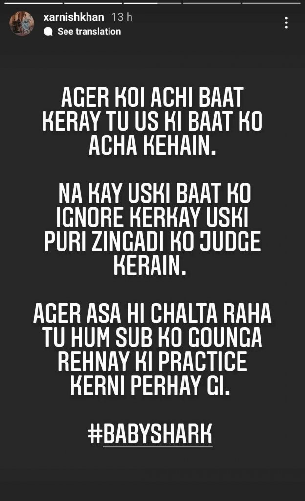 Meanwhile, Zarnish Khan came out in defense of the singer and said that people must develop the habit of listening to good advice from someone instead of making personal attacks and judging someone’s life.