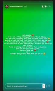 “A lot of us had this idea that ‘Clear skin’ should be the goal but I guess living a happy life with acne is possible,” Alizeh said with a heart emoji.