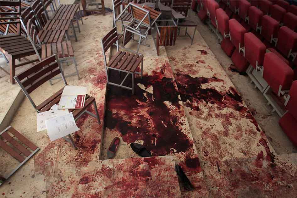 First, the attackers, armed with grenades and automatic rifles, barged into the main assembly hall where a large group of students, was taking a lesson in first aid. Next, they went to the classrooms and targeted teachers and students. There was no attempt to take hostages; they sought only to kill.