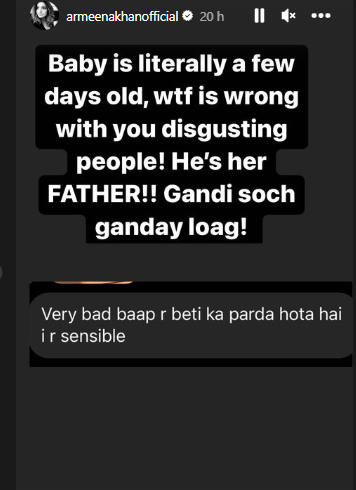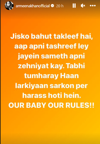 Pakistani actress Armeena Khan shuts out trolls after husband shared a video of changing the diaper of the daughter.