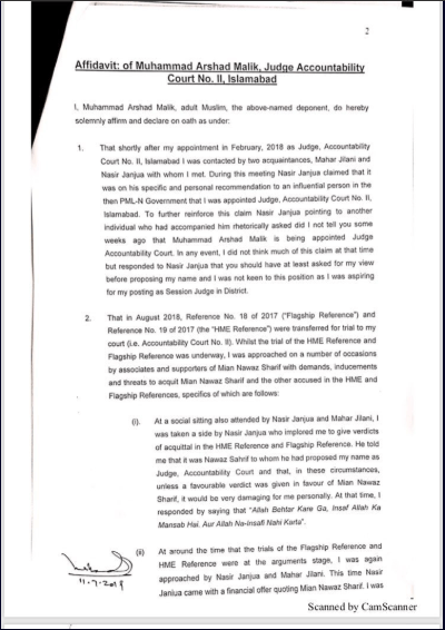 However, the affidavit contained more than just an explanation to the charges leveled at him by PMLN leader Maryam Nawaz. It contains a detailed account of how the Sharif family and their associates allegedly offered bribes and used pressure tactics to get favorable verdicts.