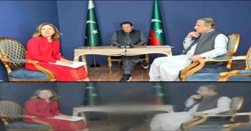 According to the details, file footage shown on the channel blurred Imran Khan, while the picture of the IMF representative and Shah Mehmood Qureshi was crystal clear.