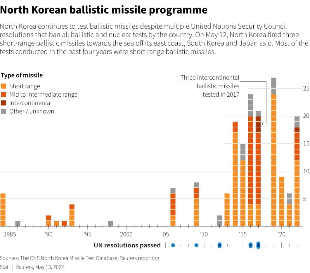 Any major North Korea weapons test over the next five days could overshadow U.S. President Joe Biden’s broader trip focus on bolstering Asian allies against China, analysts say.