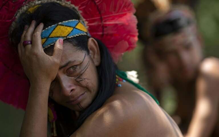 Alves and her small branch of the Pataxo Ha-Ha-Hae indigenous people settled in the forest a year and a half ago, relocating from their strife-torn ancestral lands in the north to live in nature according to their customs. “It is very sad because we lived off the river,” said Alves, her face lined by age and sun, head crowned with a band of white and purple feathers.