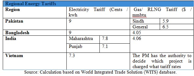 Moving forward, the fundamental concern is a need for regionally competitive energy pricing/tariffs. Our country’s energy tariffs have not been commensurate with regionally prevailing tariffs, as shown in table 1.