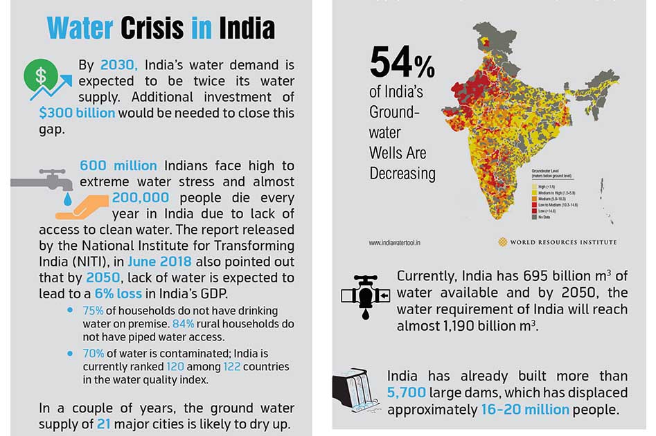 One of the main challenges for water usage across South Asia, especially in India and Pakistan, is the water-intense form of agriculture. In both these countries, nearly 90% of the water is devoted to growing crops. More importantly, much of this water is simply wasted. Both countries use a form of rice cultivation in which the crop is grown in standing water, and the majority of this water is lost to evaporation.