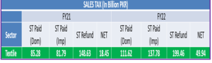 FBR claimed that domestic sales constitute more than 50 percent of all sales from the textile sector and somehow the industry was evading approximately $12 billion worth of sales tax on domestic sales. However, domestic sales of the sector do not exceed 20% of industrial output, as later conceded by FBR. Back in 2019, the government assured industrialists that they will examine the issue in 6 to 8 months, but no such review has been taken even after the passing of 3 years.