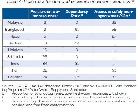 Pakistan has a precarious position given that, on the one hand, Indus Basin’s security is endangered owing to Indo-Pak water disputes and on the other hand, Pakistan depends solely on Indus Basin water supplies for its water, whereas other regional countries cover their water needs either from rainfall or multiple basins.