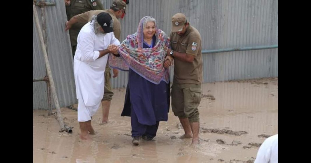 Despite of heavy rain President Central Punjab @Dr_YasminRashid walked through mud and water for Chairman’s Jalsa in Chichawatni #PP202 .