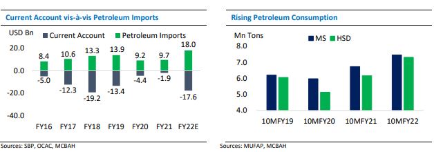 This was the highest ever diesel consumption in a month. Removal of subsidies is critical to reining demand pressures to cool off the widening current account deficit, which has already jumped to USD 13.2 billion during nine months of this fiscal year. The ongoing commodity supercycle (in the aftermath of post-Covid demand recovery and Russo-Ukrainian conflict) is expected to keep energy and food prices higher, which is expected to widen CAD to USD 17.6bn (4.6 percent of GDP) for FY22, the highest since FY18 when the country suffered a CAD of USD 19.2 billion (6.1 percent of GDP).