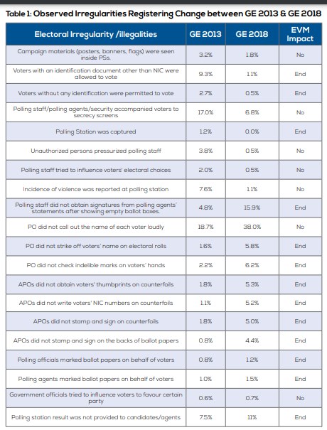 However, all that depends on rigorous training of polling staff and quality of technology. One thing is certain, if quality EVM and I-voting are used professionally, the expertise of ‘talented’ manipulators will come to an end. According to the FAFEN observation report, electoral illegalities and irregularities took place at 21,766 (38 percent) of the 57,832 polling stations (PSs) observed PSs.