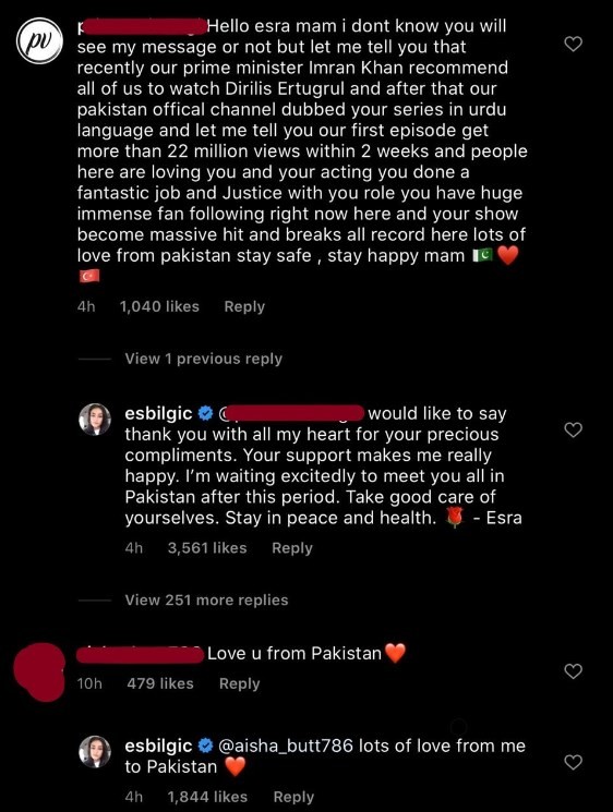 Meanwhile, Gulsim Ali who played Aslihan Hatun in the third season of Dirilis Ertugrul also reciprocated the love from Pakistani fans with warm words.