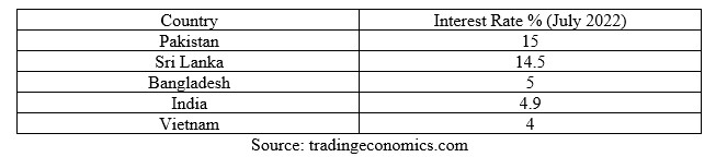 High interest rates belie the impression of a stable economy in the short run, while long-term economic health continues to be endangered due to the volatile nature of an economy with an interest rate as high as 15%. Furthermore, high interest rates not only curtail investment, but also make it virtually impossible for the concerned industries to remain profitable. The spike in interest rates has all but put a complete stop to investment, upgradation and technological advancement in various industries. Pakistan’s interest rate is now the highest in the region – even higher than that of Sri Lanka, which is reeling from a default on its debt.