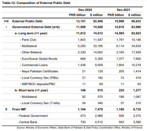 Pakistan’s external debt is derived from four key sources, with around 47 percent coming from multilateral loans, 31 percent from bilateral loans, 14 percent from commercial loans and 9 percent from Eurobonds/Sukuk at end December 2021.