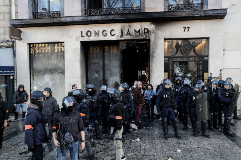 On Saturday, 91 shops including luxury outlets such as Longchamps and Bulgari were damaged, burned or looted on the Champs-Elysees, according to the Paris Chamber of Commerce, in scenes that were broadcast worldwide.