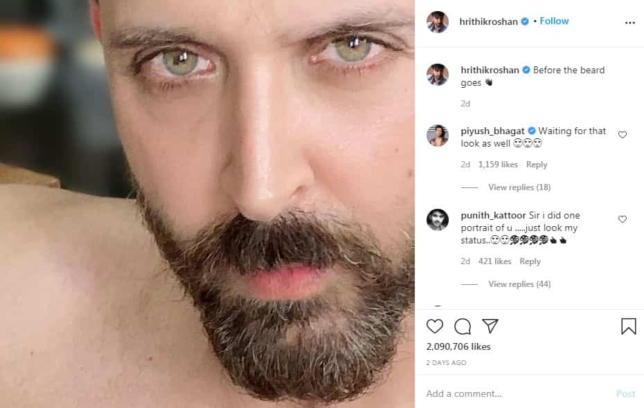 Prior to taking the internet by storm with his beardless look, Hrithik had shared a pre-shave picture flaunting his heavy beard on the photo-sharing website and had written: “Before the beard goes.”