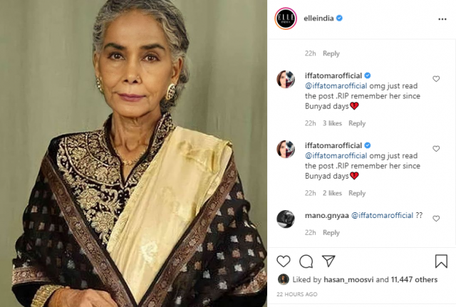 A screenshot of her bizarre ‘wow’ comment under the post on the death of Surekha Sikri went viral on social media. The weird action of Iffat Omar confused the fans and followers on social media. Her comments triggered a debate on social media. Some users wondered whether her account was hacked or not, others said that she had commented by mistake while a few thought she is allegedly mocking the death of Bollywood actor, Surekha Sikri.