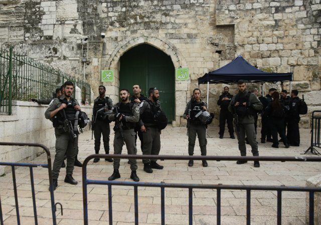 It is located in east Jerusalem, occupied by Israel in the 1967 Six-Day War and later annexed in a move never recognised by the international community. Recent weeks have seen scuffles over a side building at the site known as the Golden Gate. Palestinian worshippers have been entering the site despite an Israeli order that it should stay closed.