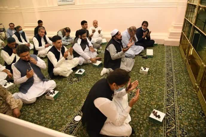 The prime minister along with his delegation broke fast (Iftar), offered Namaz-e-Maghrib, nawafil and prayed at the Masjid e Nabvi (SAW).