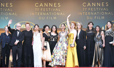 The premiere followed a historic protest on the Cannes red carpet Saturday by Hollywood stars and female filmmakers demanding equal pay and an end to sexism.