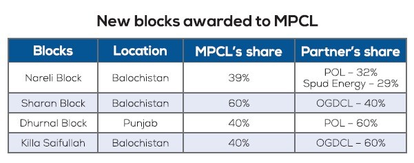 The Block Bidding Round 2020 was arranged by the government for 20 blocks and 15 were awarded after aggressive bidding based on work units committed by 9 different E&P companies. MPCL had bid for 6 blocks, it has won awards for 4 and 3 of these are in Baluchistan where MPCL has been working and carrying geological studies for some time.