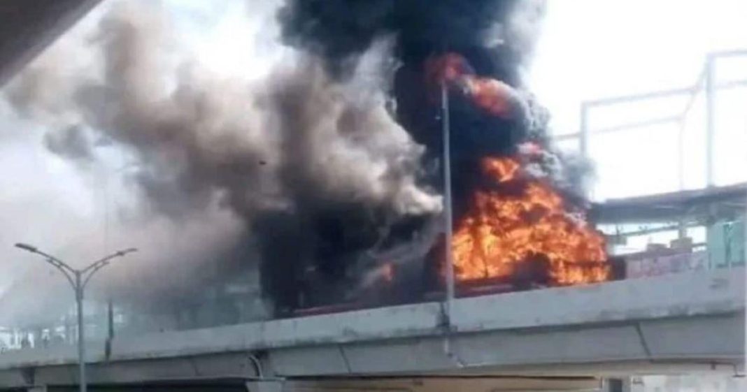 Fire brigade vehicles reached at the spot to control fire as the driver stopped the bus immediately and unlocked both gates to exit passengers. However, the metro bus was damaged severely and it was also reported that some of the passengers got injured.