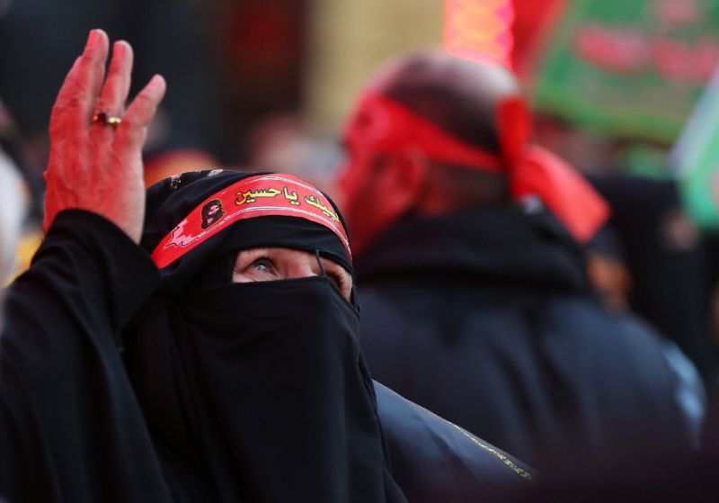 Dressed in black, pilgrims beat their heads and chests as they thronged the golden-domed mausoleum where the Prophet Mohammed’s grandson is buried.