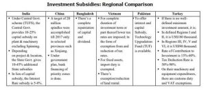 It is also worth noting that there are significant differences in investment subsidies among various Asian countries, as illustrated in the table below. In Pakistan, only direct exporters are subject to a 1% liability tax, while indirect exporters, who comprise 70-80% of the supply chain, must pay all taxes in full.