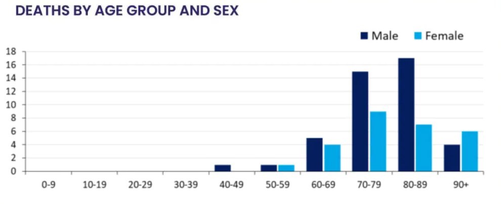 In Italy and China deaths of men are more than double those of women. In New York city men constitute about 61% of patients who die. Australia is shaping up to have similar results, though here it’s mostly in the 70-79 and 80-89 age groups.