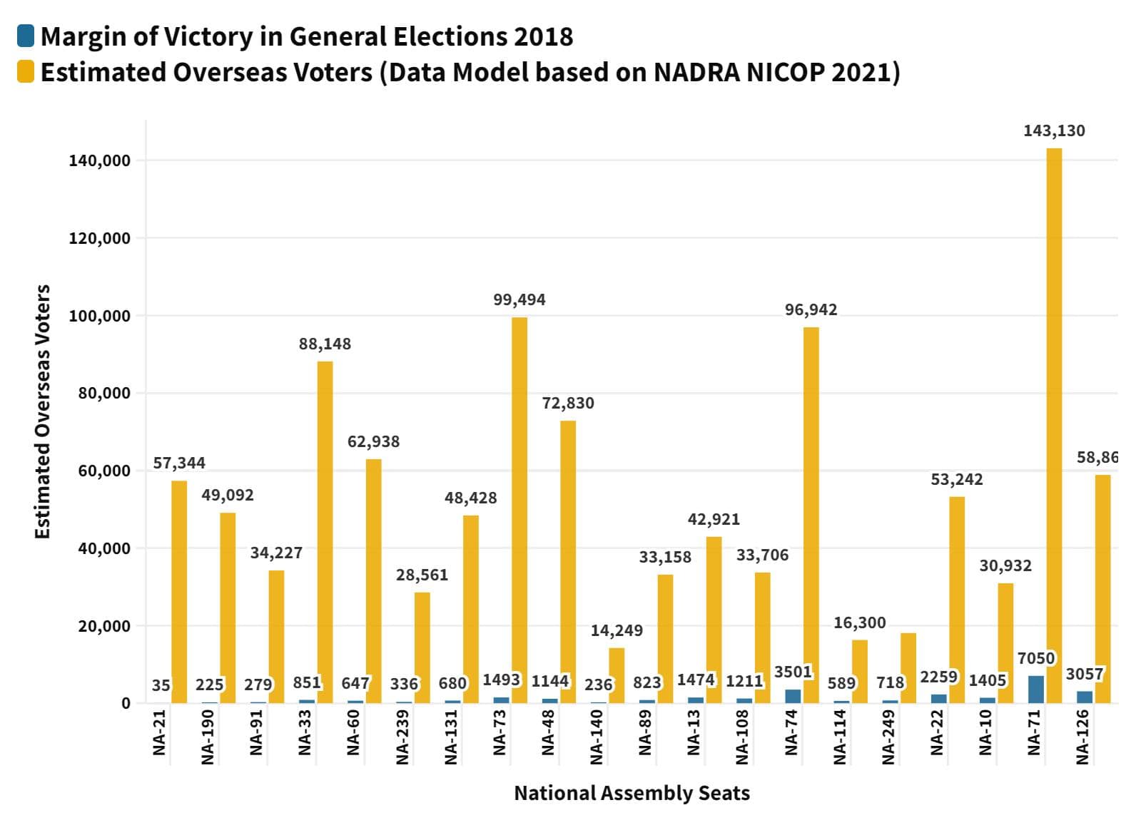 To determine the magnitude of the impact of Overseas Voting, let us turn to numbers. In collaboration with NUST(university) researchers, I published an earlier article, ‘ THE GAME-CHANGING OVERSEAS VOTE”, finds that Overseas Pakistanis can materially impact up to 186 out of 272 National Assembly seats. This represents a swing of approximately 70%. If Overseas Voters get a fair chance to vote, it would be nearly impossible to win elections without their support.
