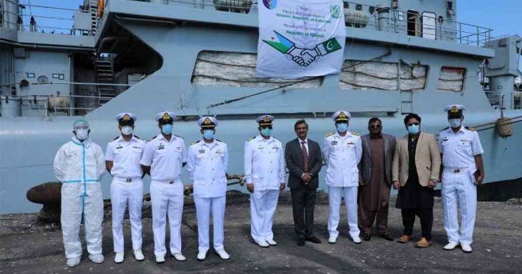 Pakistan Navy Ship “NASR” Friday arrived Djibouti on a Port Call carrying a full load of 50 metric ton rice for calamity-hit people of Republic of Djibouti.