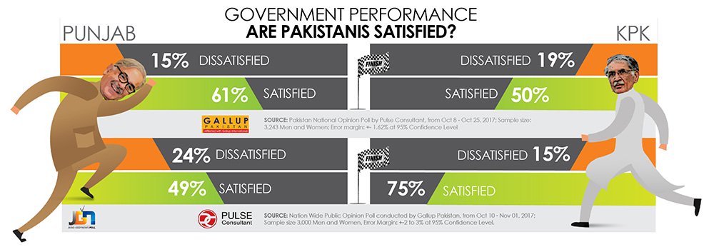 According to a Gilani Research Foundation Survey carried out by Gallup & Gilani Pakistan, 43% Pakistanis and 48% people in Punjab report that they are satisfied with the performance of the federal government since PTI won the 2018 elections.
