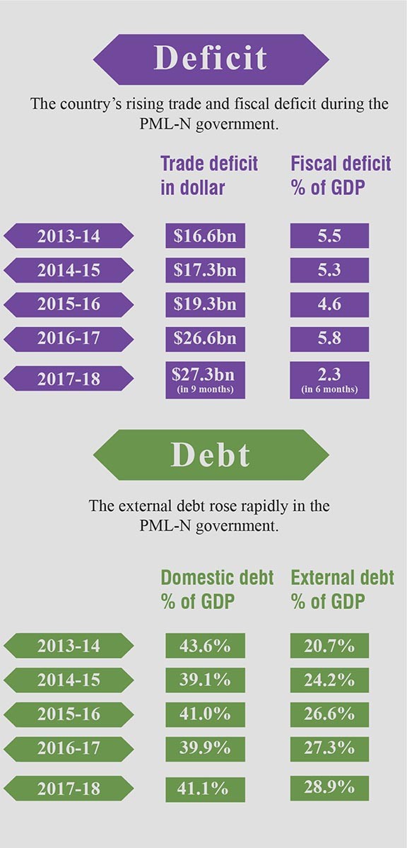 First, the fiscal deficit had surged to nearly 6% of GDP in 2016-17 from about 4.3% in 2015-16, reflecting a major reversal of fiscal discipline achieved under the IMF program. For the current fiscal year, the Government had targeted to achieve a deficit of 4.1%, but has now revised it to 5.5%.