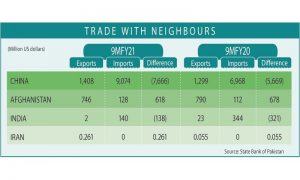 The country’s exports to countries like Afghanistan, China, Bangladesh, Sri Lanka, India, Iran, Nepal, Bhutan and the Maldives only add up to a small amount of $2.788 billion which is just 14.91pc of Pakistan’s total global exports of $18.688bn in 9MFY21.