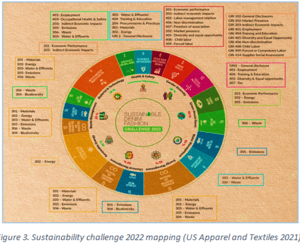 Pakistan’s textile industry has incorporated the long-ignored principles of environmental consciousness into its agenda. One of the examples is presented in figures 2 and 3, which indicate the major environment and climate change-related principles and sustainability mapping set to be addressed by US Apparel and Textiles. Interloop is another great example that has, as a result of its green initiatives, shown the following environmental impacts in 2021:
