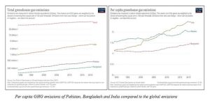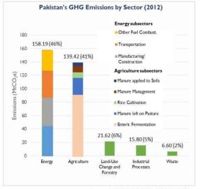 Climate change is the worst catastrophe mankind is experiencing around the globe. The poorer South is suffering the increasing vulnerability to climate change and countries such as Pakistan with little contribution to global GHG emissions are among the top listed sufferers. The recent country-wide floods are evidence of Pakistan bearing someone else’s emissions burden. The global GHG emissions data indicate that Pakistan contributes around 1% to these emissions. Energy and agriculture are the main sectors responsible for most of the emissions as 46% of emissions come from the energy sector and 41% from agriculture.