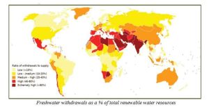 Pakistan was ranked 160th in the ratio of water withdrawals to water resources in 2017. Agriculture, domestic usage, and industry are considered the largest water consumers in the country.
