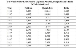 In 2017, Pakistan had 1,253 m³/person/year of renewable water while Bangladesh has 7,451 m³/person/year and India had 1427 m³/person/year of renewable water resources. This indicates that Pakistan’s available water resources are declining at an alarming rate. Thus, the giant water consumers including both agriculture and industry can enhance water use efficiency by adopting modern and efficient water conservation options to protect Pakistan from becoming a water-scarce country.
