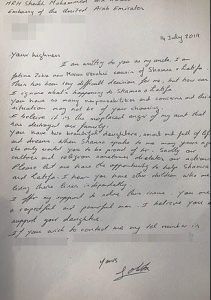 ‘The information contained in the letters that he has kept from Shamsa shows that she wanted a new life and help to escape.