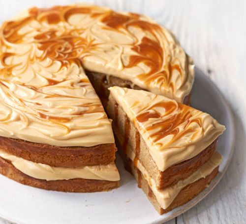 - Pour half the brownie batter into the tin and level it with a spatula. Using a teaspoon, spoon half of the salted caramel on top of the batter layer in 5 thick, evenly spaced stripes. Spoon the rest of the brownie batter on top and smooth it out, trying not to disturb the caramel beneath. Top with the rest of the caramel in the same stripy fashion.