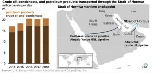 The Straits of Malacca are crucial to the flow of global trade and strategically and commercially significant for several reasons. It is the shortest sea route between the Indian Ocean and the Pacific Ocean and over one-third shorter than the closest alternative sea-based route. On the other hand, the Strait of Hormuz is the world’s most important oil chokepoint because of the large volumes of oil that flow through the strait. In 2018, its daily oil flow averaged 21 million barrels per day (b/d), or the equivalent of about 21% of global petroleum liquids consumption.