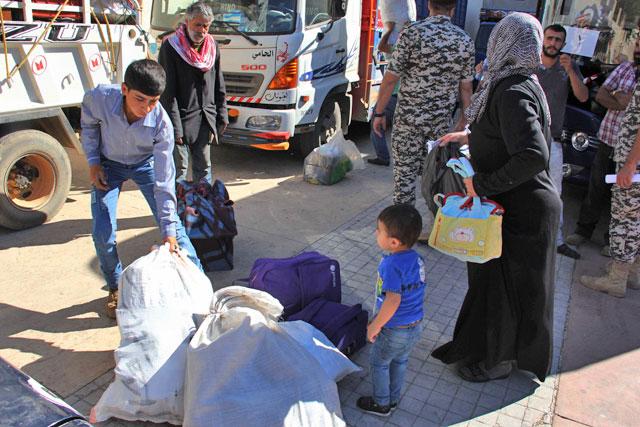 Several years after fleeing Syria, a group of wide-eyed refugees stares through the tinted windows of their bus to see the homecoming committee the government has organized for them. The few dozen people who step off the coach that ended their exile in Lebanon look slightly alarmed by the crowd forming around them and the sight of Russian soldiers supervising their crossing at the Jdeidet Yabus border post.