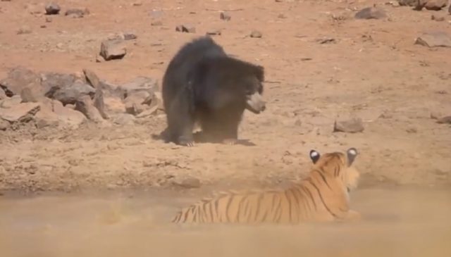 Rumble in the jungle: mother bear fights off Indian tiger