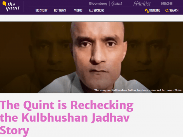 ‘Kulbhushan Jadhav is a RAW spy’, The Quint confirmed then took story off website