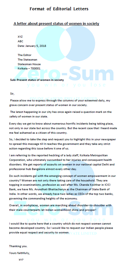 Status of women – Letter to Editor