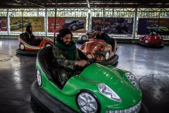 “There are no schools, no work… we should at least have a place to have fun,” said one mother, who asked to be identified only as Wahida, as she watched her children play in a park through the window of an adjoining restaurant.