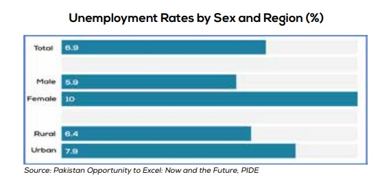 It is astonishing to see that despite factors like rising female literacy, awareness of women’s rights and the introduction of laws and policies emphasizing gender equality, the already high level of female unemployment has been rising further since 2019.