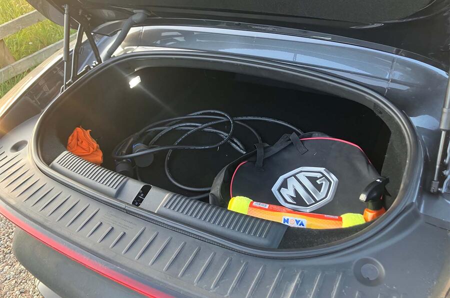 Mercifully, MG’s techs have a workaround: behind one of the front bumper’s towing eye access panels is a wire pull that unlatches the bonnet, so you can get under there, if not to your house keys.