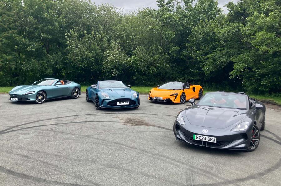 I recently took the Cyberster along to a photo and video shoot in Wales to meet a different Aston Martin, a Vantage Roadster, plus a McLaren Artura and a Ferrari Roma. The MG wasn’t part of the test: these are luxury sports cars with mighty engines. But if you take a look at the picture above, does it look so out of place?
